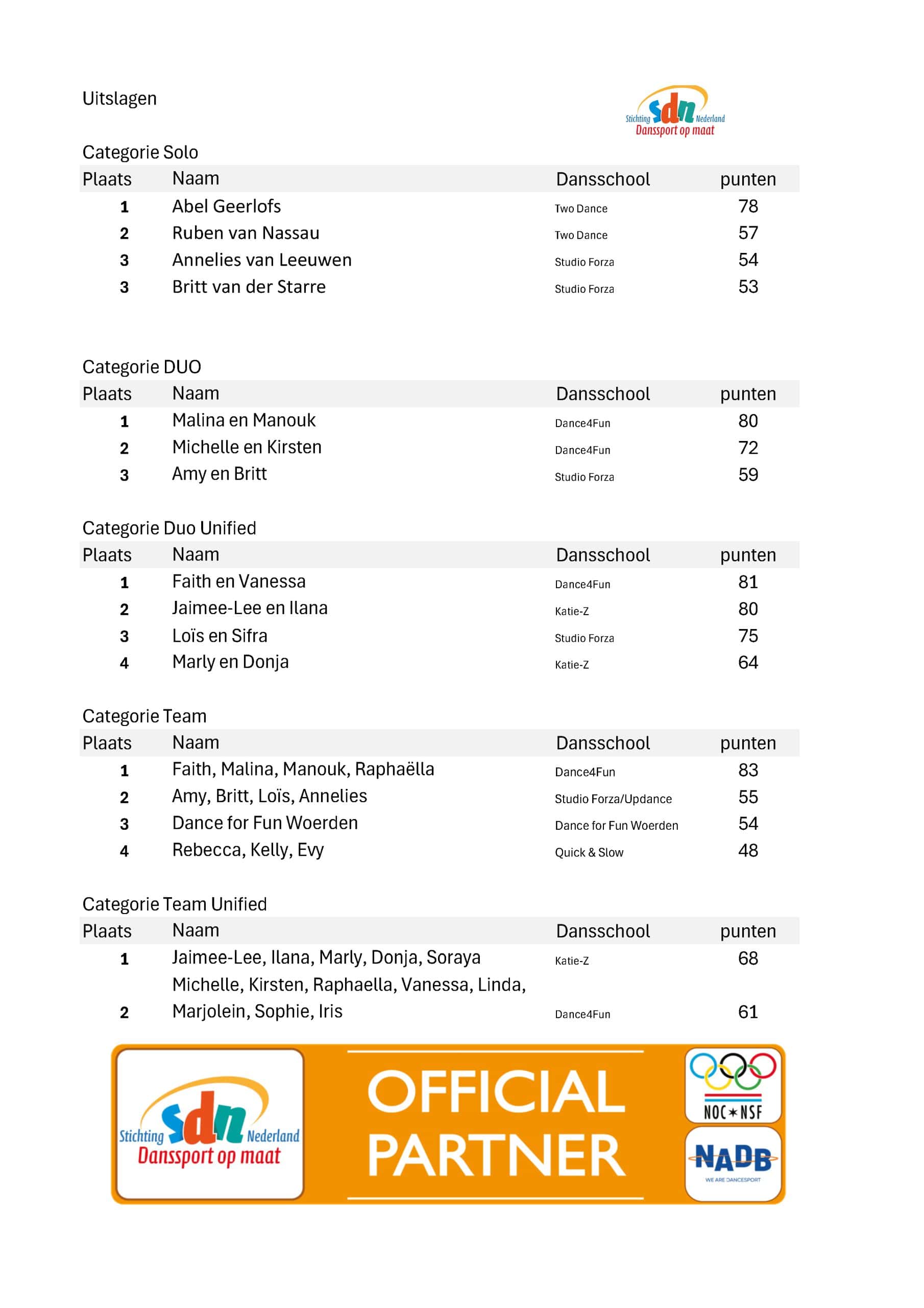 Uitslagen en foto’s