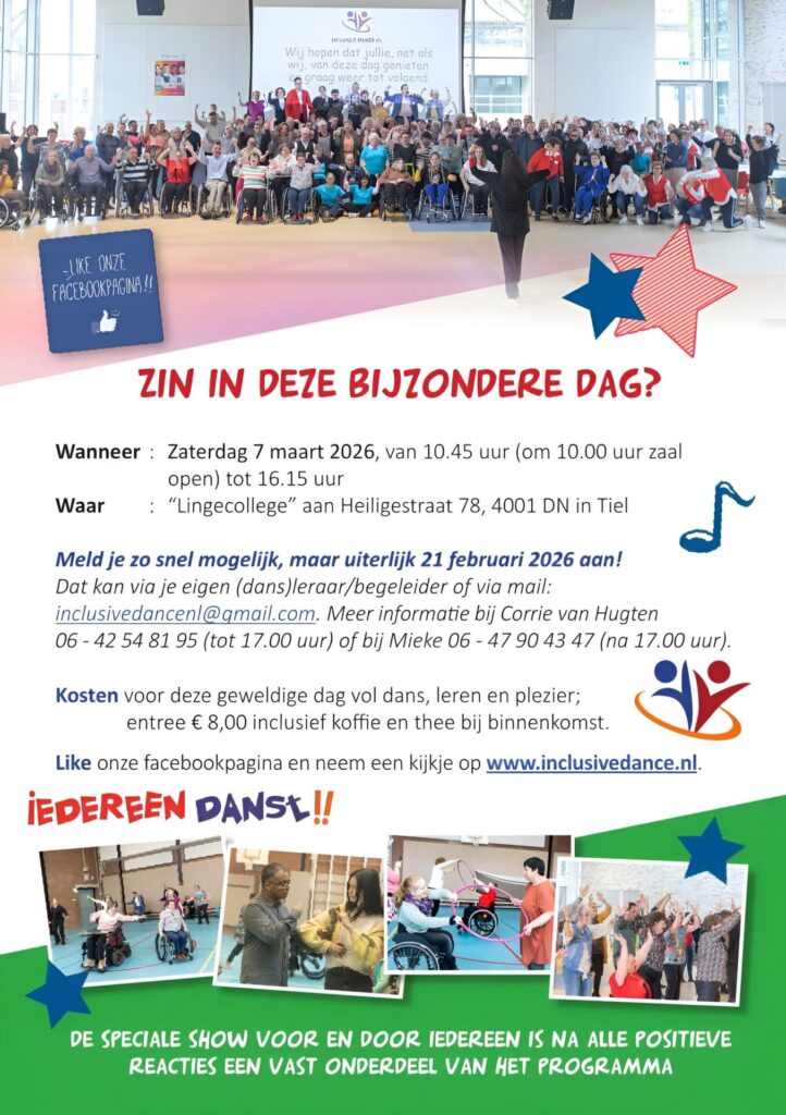 De volgende Inclusive Dance Dansdag is wederom in Tiel.